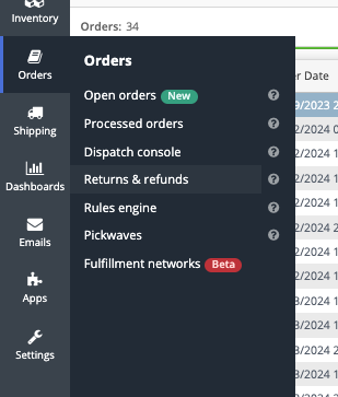 - Surandame užskymą “Processed orders” dalyje ir supildome RMA: